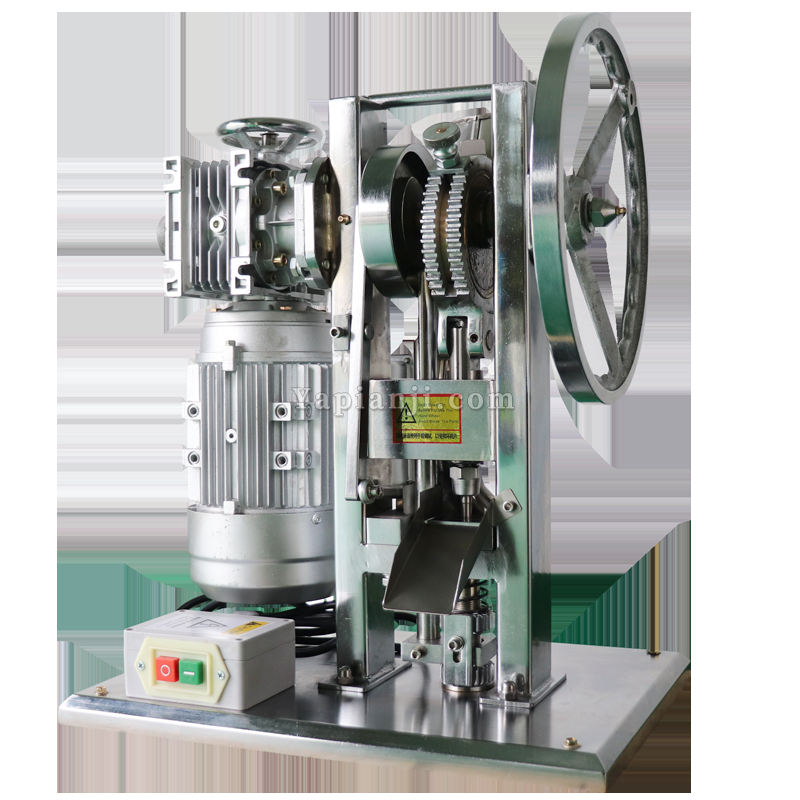 壓片機的定義:壓片機上安裝的模具上下運動,把進入模具的粉末或者顆粒壓制成片劑的一種機械設備,比如市面上常見的片劑、糖果等, 壓片機自帶一套圓形模具,也可以更換其他形狀的模具,更換模具簡單,一般都有安裝操作視頻,所以更換模具可以壓制不同的片劑的樣子, 壓片機本身可以調厚度和壓力,大部分壓片機安裝調速裝置的,可以調速,方便控制產量電動壓片機可以電動,也可以手動,一般手動是用來測試、調試,把自己需要的硬度和厚度調好之后,插電開機批量生產......
